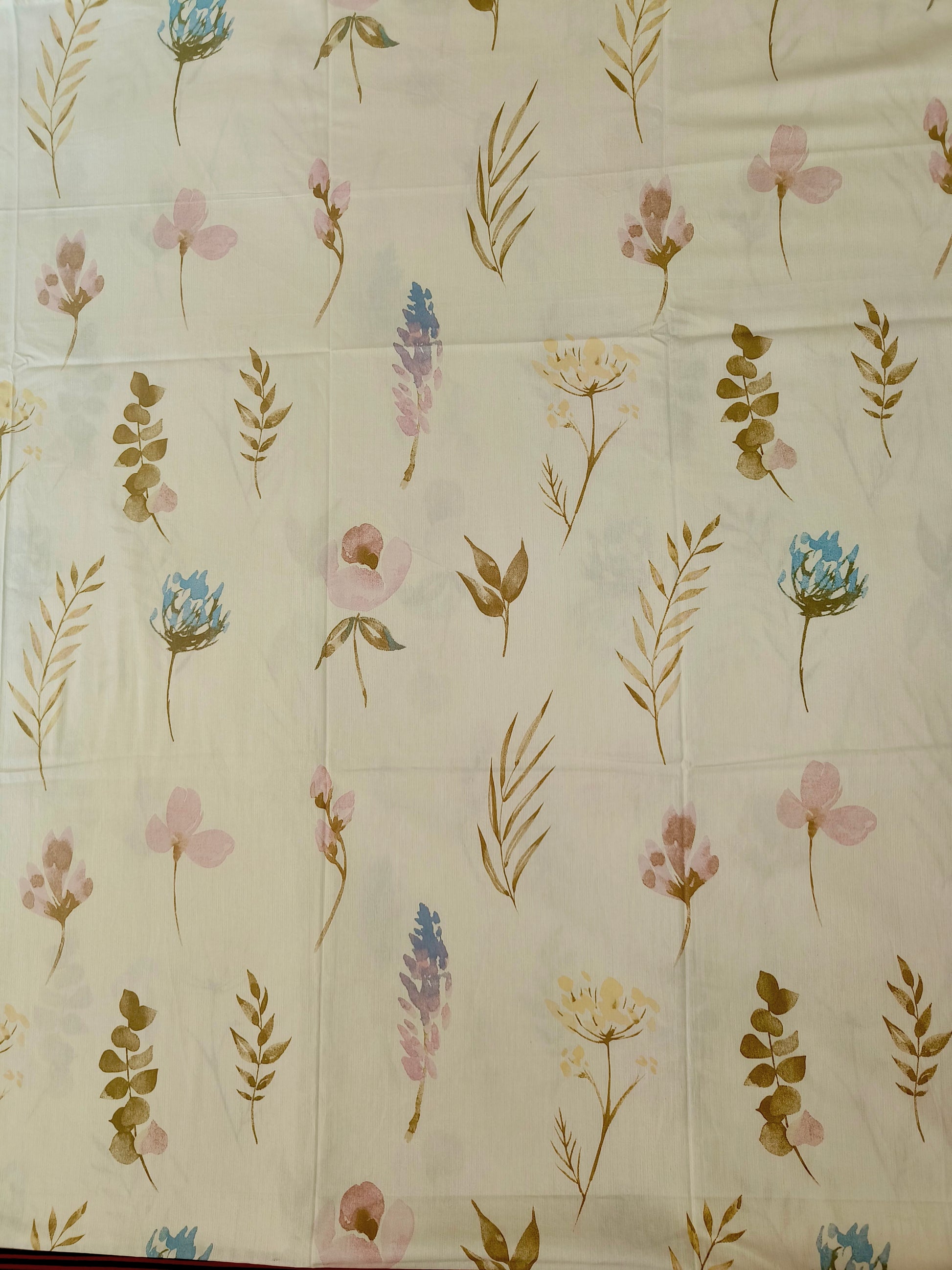 Wrap yourself in a dream with this bedsheet a sanctuary of softness and serenity. Crafted from 100% pure cotton, its breathable weave promises comfort through every season. The delicate watercolor print in subtle pastel tones evokes the gentle hush of dawn skies and blooming spring meadows, transforming your bedroom into a tranquil escape. Whether you're curling up with a book or drifting into slumber, this bedsheet is more than bedding, it's a canvas of calm.